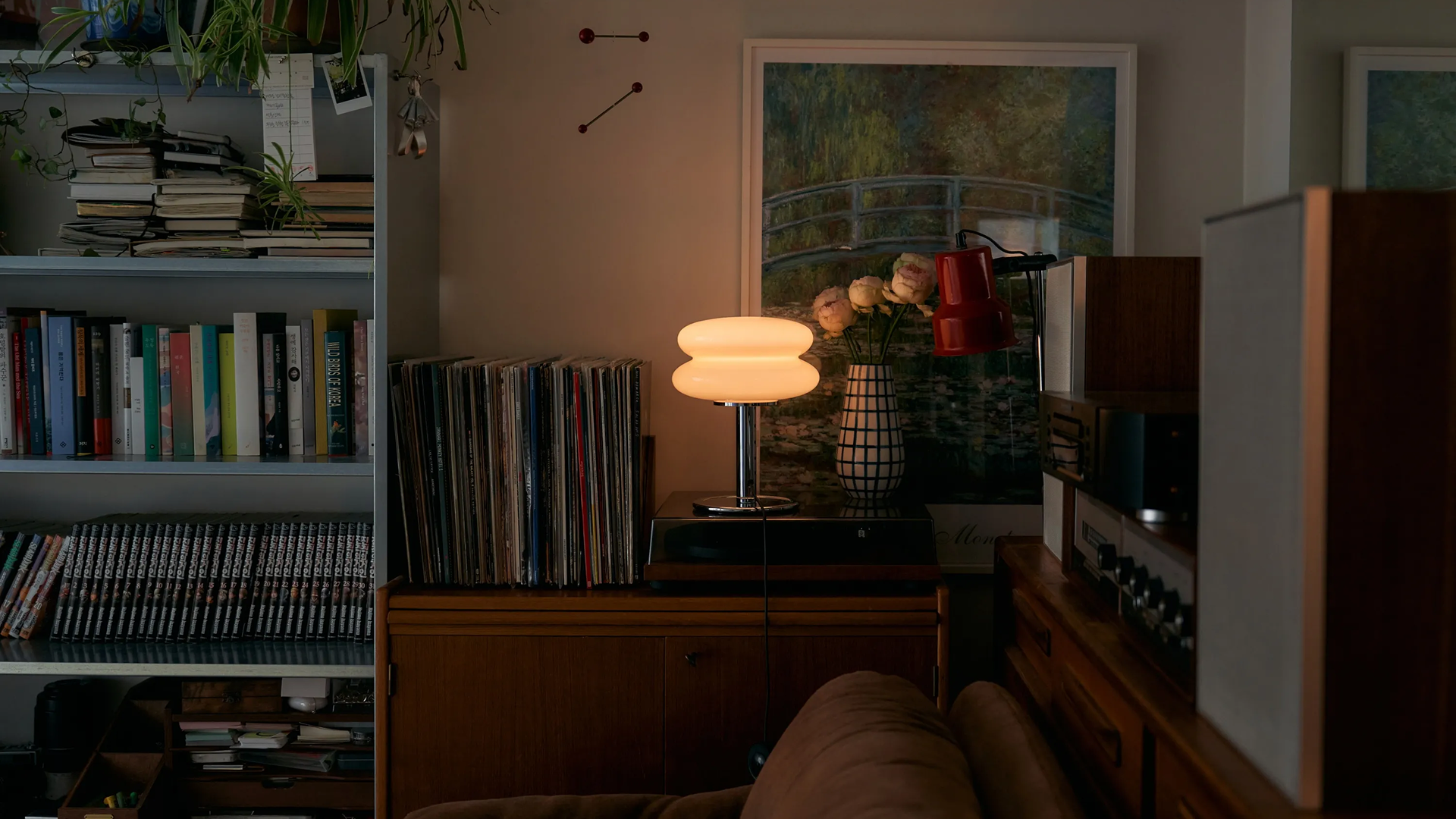 플라밍고의 패브릭 쉐이드에서 새어나오는 빛은 그만의 아늑하고 따뜻한 느낌을 전하고 일광전구의 새로운 컨트롤러원과 내장형 LED 그리고 쉐이드 틸팅 기능은 전에 없던 편의성을 제공합니다.
